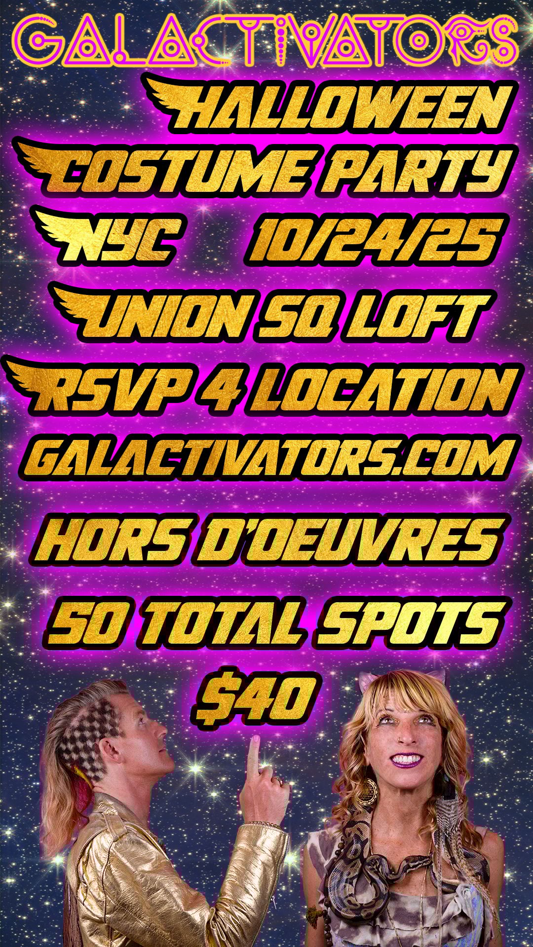 The Galactivators invite you to a Halloween costume experience that bends time, taste, and sound. Immerse yourself in otherworldly flavors, live performance alchemy, and interdimensional grooves designed to stir the spirits. Costumes are highly encouragedโฆ.. the more cosmic, the better. ๐ Hors dโoeuvres served. Come hungry. Leave transformed. ๐ด๐ซ