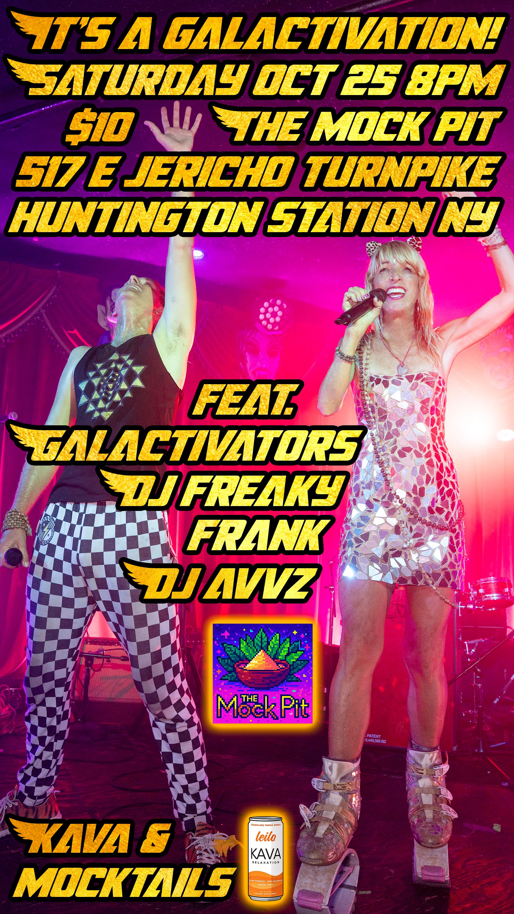 Weโre bringing the cosmic funk to The Mock Pit in Huntington Station on Saturday, October 25th at 8PM! Join the Galactivators, DJ Freaky Frank, and DJ AVVZ for a high-vibe night of music, movement, and magic โ complete with kava + mocktails powered by Leilo Kava. โจ Admission is just $10 at the door only, so grab your SuperFriends and come raise the frequency at 517 E Jericho Turnpike for an unforgettable night of galactic grooves and community love! ๐๐ถ